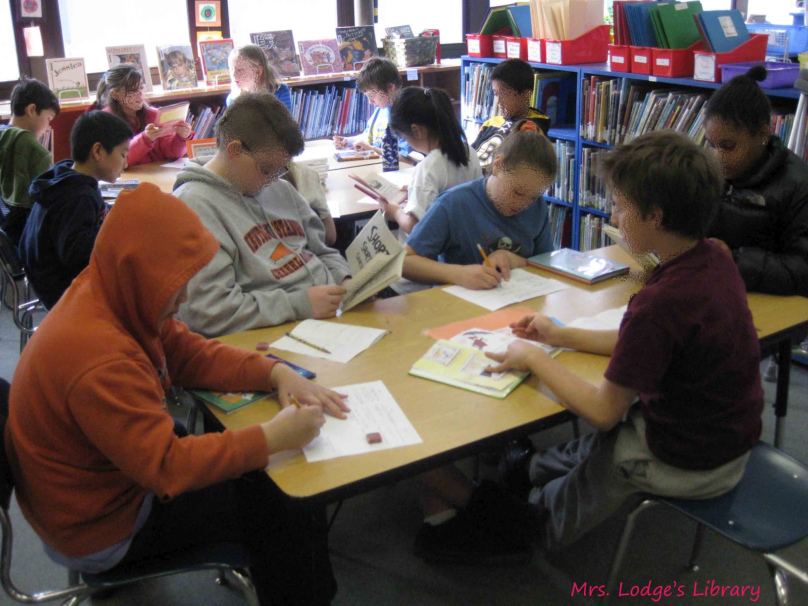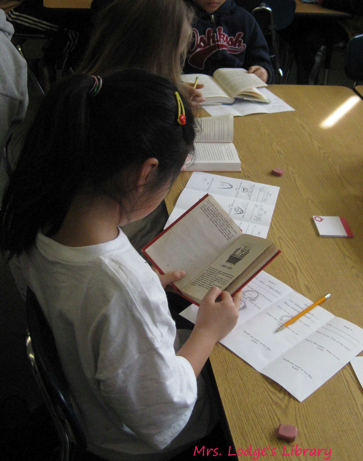 I decided to try out a fiction book tasting with my 4th graders. I made up a "menu", pulled a ton of different chapter books, and set up some classical music on Pandora. This particular class has been challenging to engage and have them stay focused and working independently on most activities we have done this year. As you can see, they were incredibly focused and engaged throughout our entire book tasting! They took new books home and wrote thoughtful responses on their menus! Success!