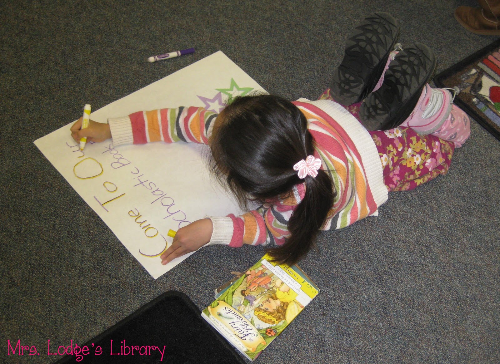 **I put 4th graders in charge of advertising. They made posters to put all around the school and did a great job. This also helped them get excited because they felt like they were a part of running the book fair.