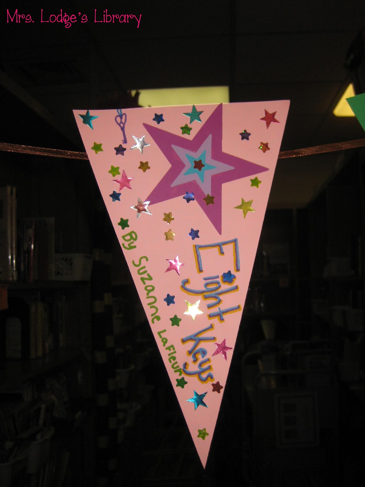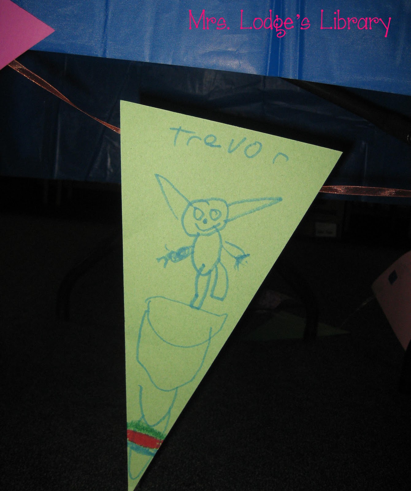 **Have the kids make decorations. Again, this helped them participate and get excited. We made pennants of favorite books, favorite characters, and books that would be at the fair.